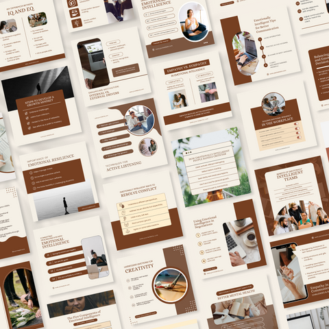 These templates are not mere eye candy. They represent a perfect fusion of aesthetics and educational value, tailored to connect with both the emotionally curious 🌱 and the self-aware pros 🌟. Simplify the intricate theories of emotional intelligence into easy-to-comprehend posts, making you the go-to expert on emotional well-being on social media!
