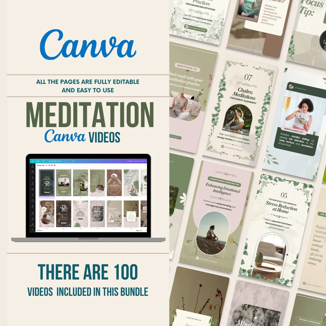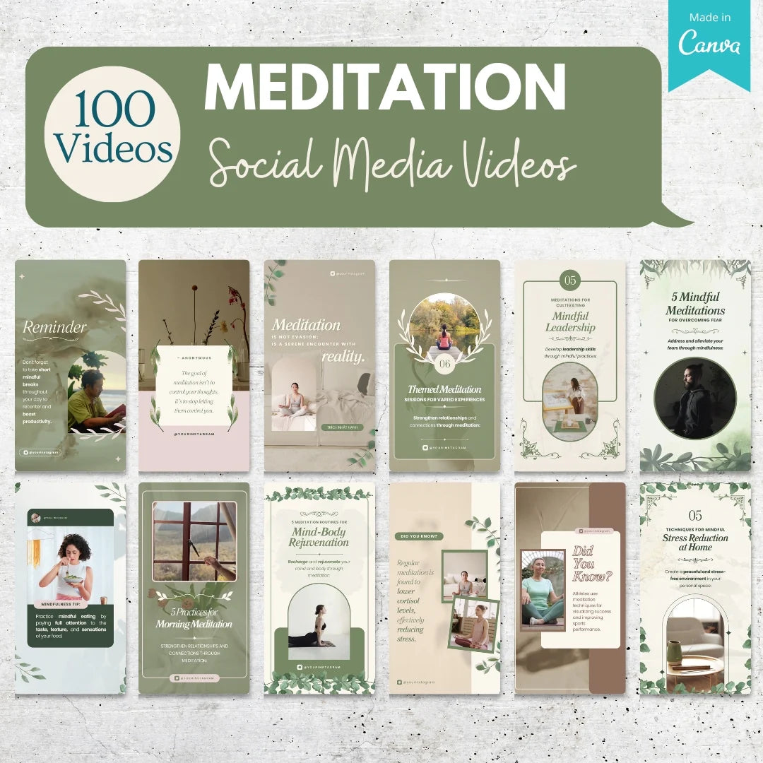 Elevate your online influence with our "Meditation Canva Videos Bundle," meticulously crafted for meditation professionals, wellness coaches, and mindfulness enthusiasts. Immerse yourself in our collection of 100 Canva templates, thoughtfully designed to inspire tranquility, mindfulness, and a deeper understanding of meditation practices.