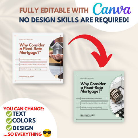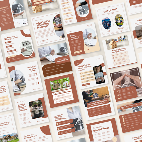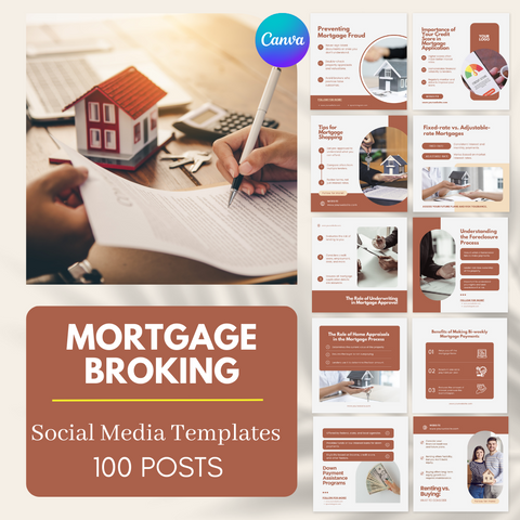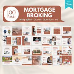 Are you in the business of simplifying the complex world of mortgages for your clients? Meet your match: our Mortgage Broking bundle. Crafted for mortgage brokers, financial advisors, and real estate professionals, this collection is your secret weapon for dominating the social media landscape. Inside this bundle, you'll find 100 meticulously designed Canva templates, engineered to both educate and engage your audience about home loans, interest rates, and the path to homeownership.