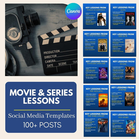 Unveil the Wisdom of the Silver Screen with Our Movie & Series Lessons in 100 Canva Templates Bundle! 🎬🍿