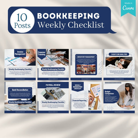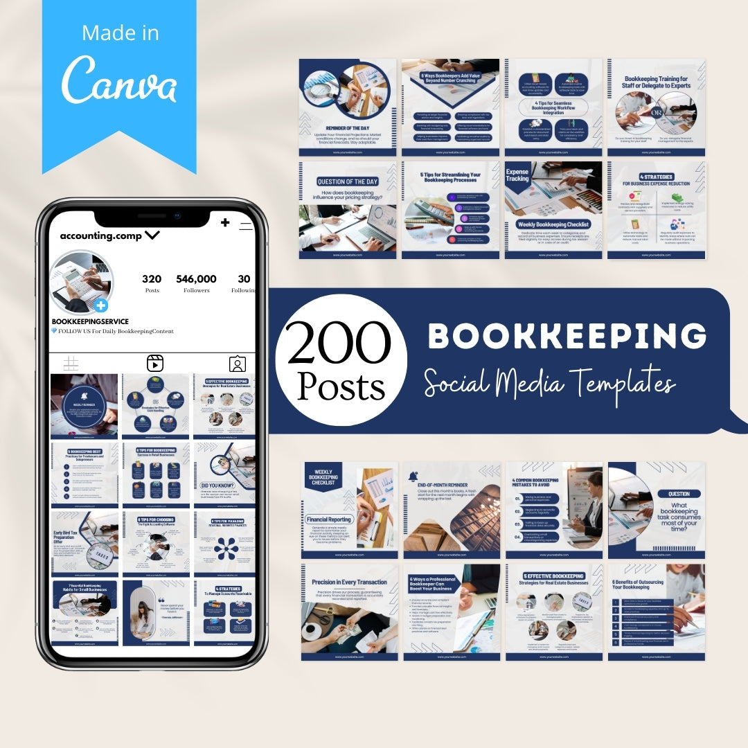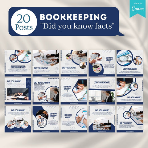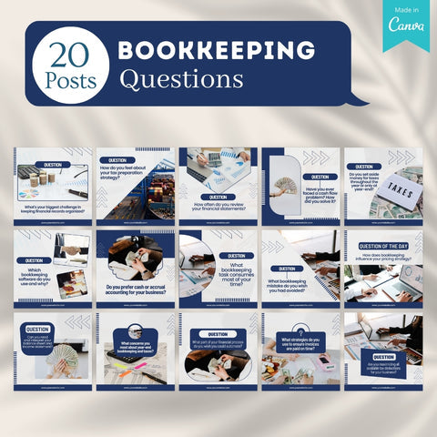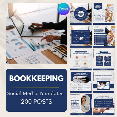 Ready to transform your bookkeeping conversations? This comprehensive bundle, tailored for bookkeeping professionals, includes 200 Canva templates designed to make bookkeeping topics accessible and captivating. Whether you're a bookkeeper, an accountant, or a finance enthusiast, our templates offer a wealth of content to clarify the intricacies of bookkeeping and make your social media presence shine.