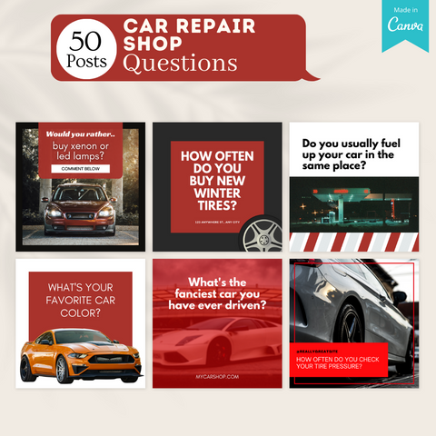 ✅️ Car Repair Shop Questions - 50 Templates: Spark interesting conversations with your audience by asking questions about their car maintenance routines, repair experiences, and vehicle care strategies. ❓🚗💭