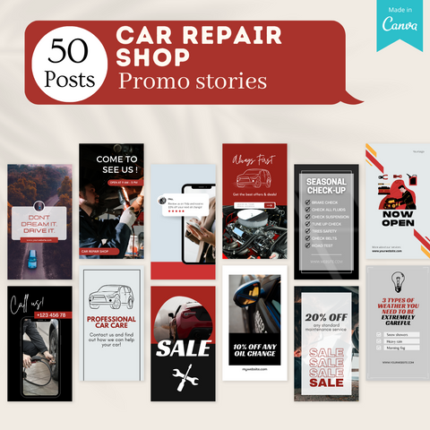 Introducing the "Car Repair Shop" Social Media Canva Templates Bundle, expertly designed for car repair shops, auto mechanics, vehicle service centers, or anyone in the car repair industry! 🚗🔧💻