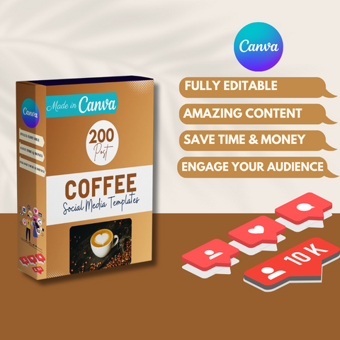 This comprehensive bundle includes 200 fully customizable Canva templates, thoughtfully designed to help you create intriguing and engaging social media content that encapsulates the aroma, taste, and essence of coffee. Share inspiring quotes, intriguing questions, and enticing promotional posts to captivate your audience and highlight the richness and allure of your coffee products. 🎨💡📈