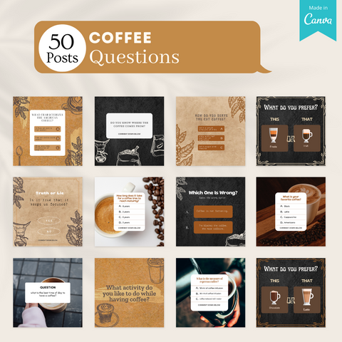 ✅️ Coffee Questions - 50 Templates: Spark engaging conversations with your audience by asking questions about their coffee preferences, brewing methods, and coffee experiences. ❓☕💭
