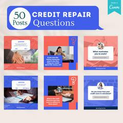 This all-encompassing bundle is loaded with 200 fully customizable Canva templates, designed to help you create engaging, informative, and financial literacy-focused social media content that underscores the significance and strategies of credit repair. Share insightful questions, inspiring credit repair quotes, valuable tips, and compelling "Would You Rather" scenarios to captivate your audience and accentuate the importance of a good credit score. 📚💡🎨
