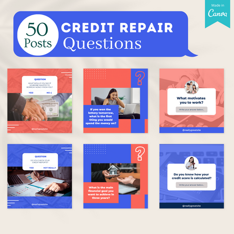 With these templates, you can consistently engage your audience with content that educates, informs, and sparks thought-provoking discussions on financial wellness. Save time, effort, and money, allowing you to focus on what you do best—providing exceptional credit repair advice and services! 💳⏰💰