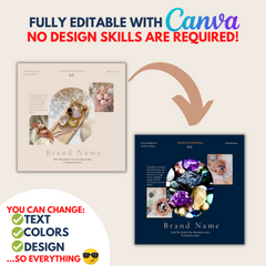 Introducing the "Crystal" Social Media Canva Templates Bundle, designed especially for crystal sellers, gem enthusiasts, spiritual healers, or anyone in the crystal industry! 💎🎨💻