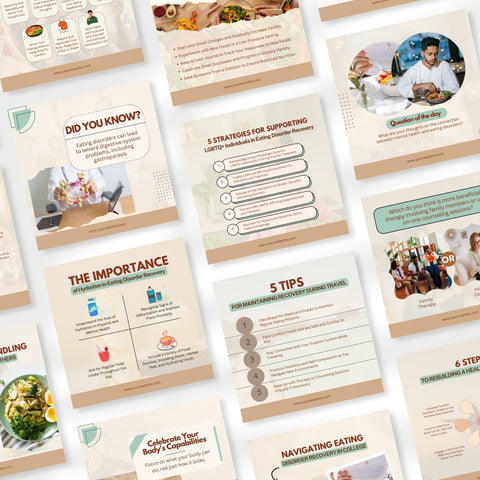 📊 50 Infographics: Informative and visually engaging, ideal for detailing key aspects of eating disorders.