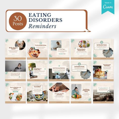 Empower your eating disorder awareness and support initiatives with our "200 Eating Disorders Canva Templates" bundle. This essential collection is expertly designed for therapists, nutritionists, educators, and advocates, offering a wide range of templates to foster understanding, promote healing, and engage audiences on this crucial topic.