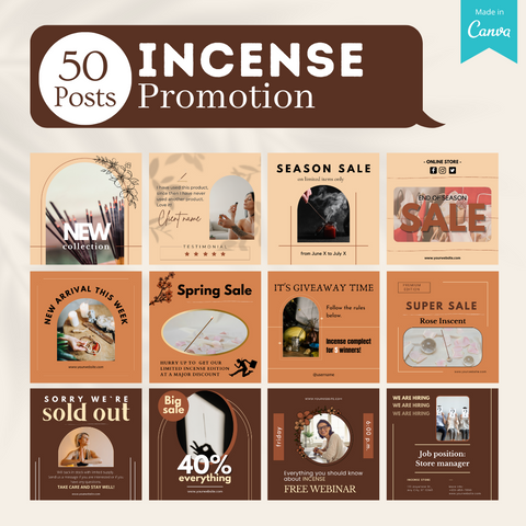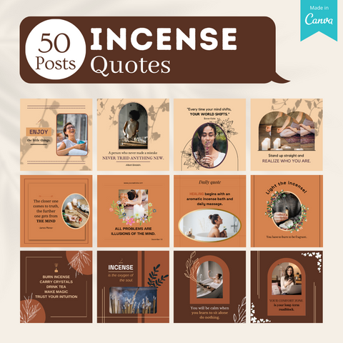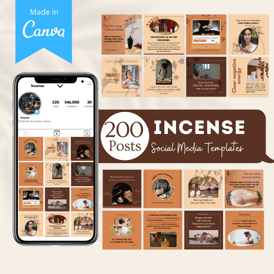 Introducing the "Incense" Social Media Canva Templates Bundle, expertly designed for incense sellers, aromatherapy practitioners, wellness brands, or anyone in the fragrance industry! 🌸🎨💻