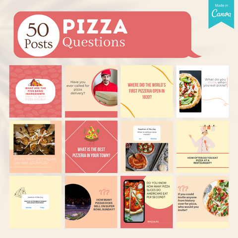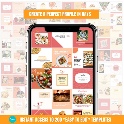This comprehensive bundle includes 200 fully customizable Canva templates, meticulously designed to help you create exciting and engaging social media content that showcases the irresistible charm and deliciousness of pizza. Share enticing questions, mouth-watering quotes, fun "would you rather" scenarios, and vibrant promotional posts to attract your audience and emphasize the irresistible allure and benefits of your pizza products. 🎨💡📈