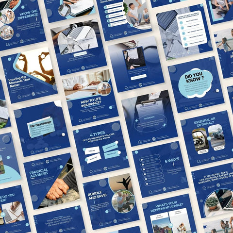 With 220 meticulously designed Canva templates at your fingertips, crafting informative, visually appealing, and engaging posts is now a breeze. Each template serves as a blueprint to share valuable insights, generate leads, and build a community around the subject of life insurance.