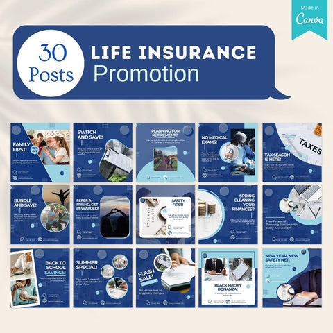 Are you a life insurance agent striving to create meaningful connections, provide valuable information, and secure long-term clientele? We have the perfect solution for you! Our Life Insurance Social Media Canva Template Bundle is purposefully designed to elevate your social media game, transforming your profiles into platforms of authority, trust, and engagement.