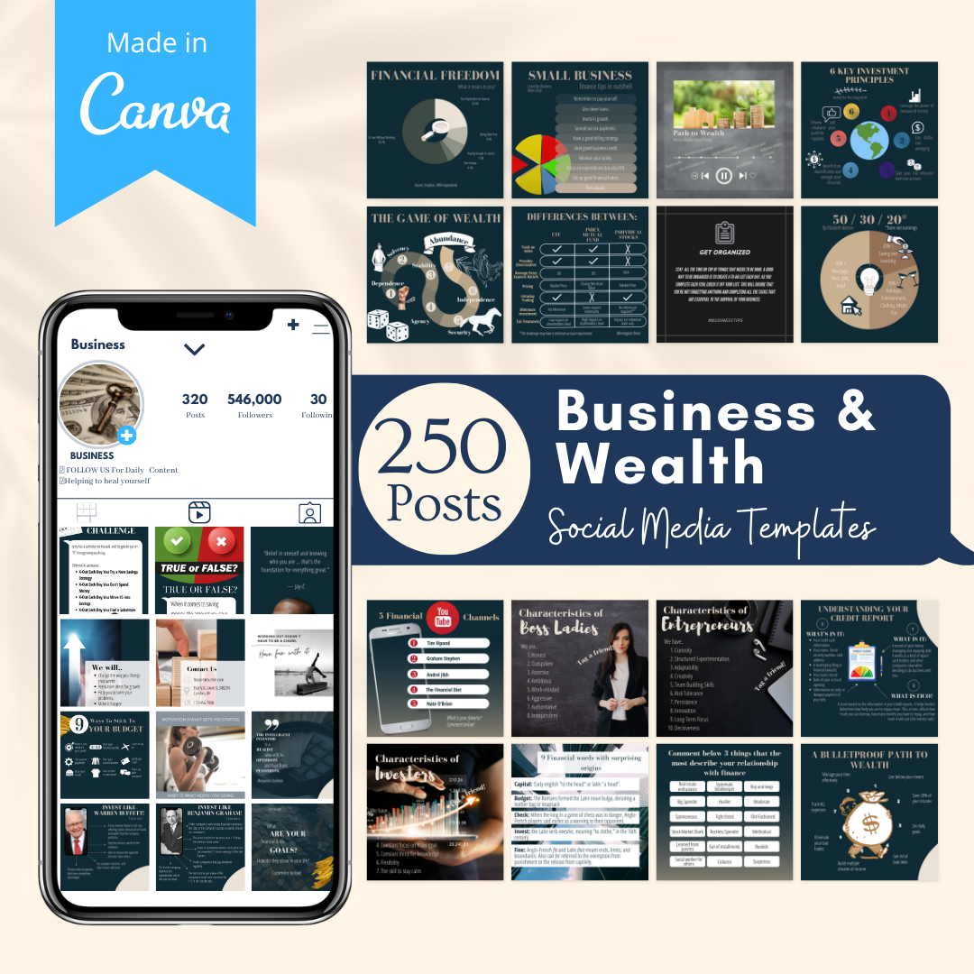 250 Business & Wealth Posts - Social Media Templates