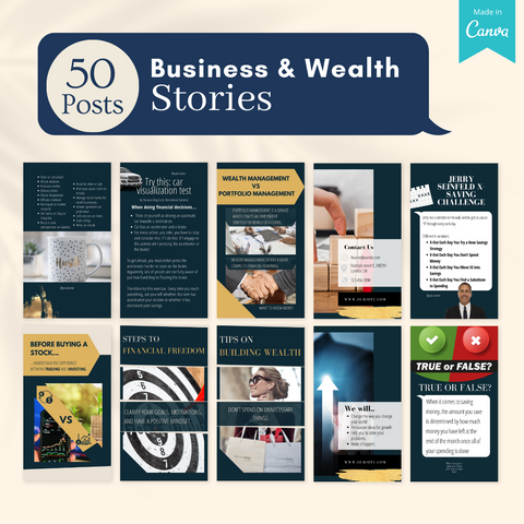 ✅50 Business & Wealth Stories - Editable in Canva for free (short stories about business and wealth management)