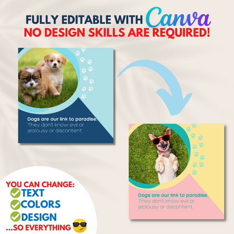 With these templates, you can consistently post on your page 📱 and engage your audience with adorable pet quotes, intriguing questions, and eye-catching promotions, all in beautiful designs. 🎨🤩