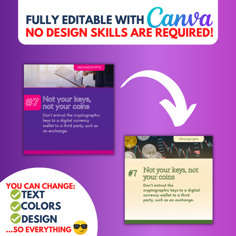 By investing in our Cryptocurrency Canva Templates, you'll be able to easily create high-quality content that educates your audience and showcases your expertise in the world of crypto. Whether you're a crypto enthusiast, investor, or educator, our templates will save you time, effort, and money by providing you with everything you need to create stunning visuals in minutes. 💰💻⏰