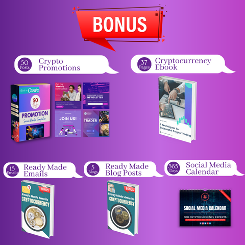 With our Cryptocurrency Promotion templates, you'll be able to spark interest and encourage your followers to invest in your products or services. Our Ebook will provide you with in-depth knowledge of the cryptocurrency market, trading strategies, and investment opportunities. Plus, with our 15 Emails and 5 Blog Posts, you'll be able to reach out to your audience and share valuable information that can help them make informed decisions. 📈📚💻