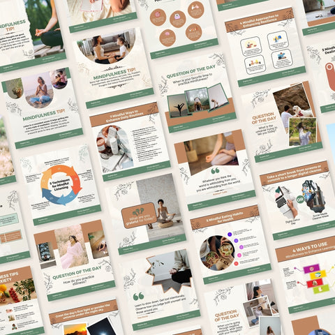 These templates span a broad spectrum of mindfulness themes, including tips, quotes, exercises, and interactive content to foster a deeper understanding and practice of mindfulness among your audience.