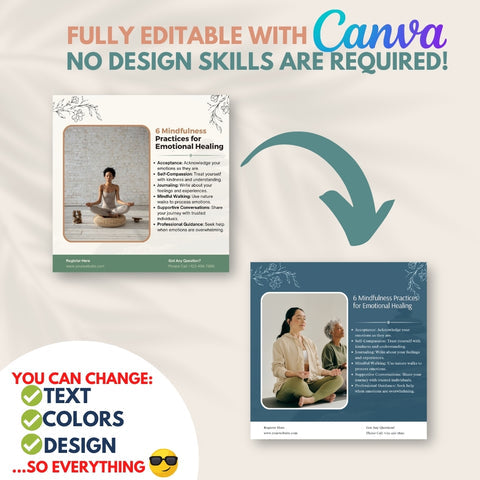 Whether your goal is to increase engagement, share profound insights, or support others in their mindfulness journey, our templates provide everything you need to convey your message beautifully and effectively. Transform your social media page into a haven of peace, presence, and mindfulness.