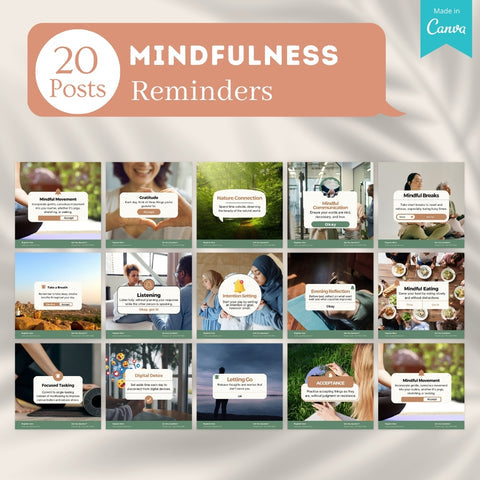 ⏳ Mindfulness Reminders - 20 posts: Gentle prompts to remind followers to pause, breathe, and be present throughout their day.