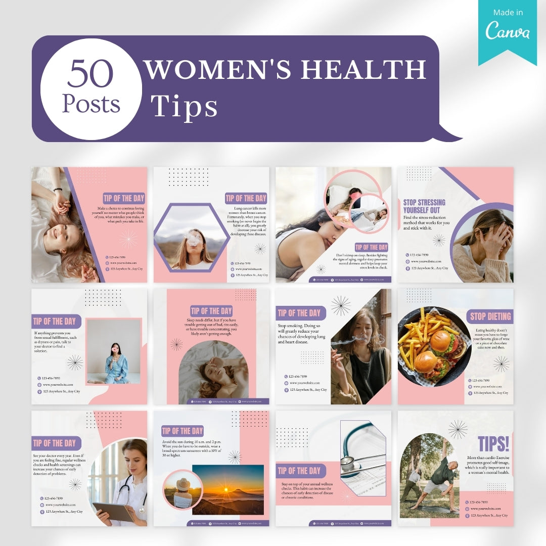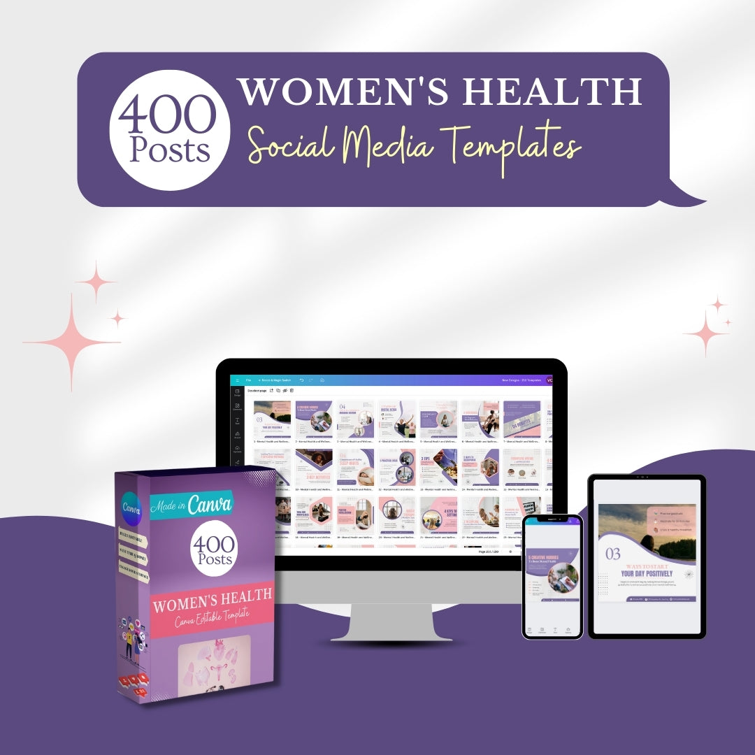 Our expanded library now features 400 fully-editable templates tailored to support and promote women's health and wellness across various dimensions. Designed for effortless customization in Canva, this collection is a treasure trove for health coaches, fitness trainers, wellness influencers, and nutritionists aiming to create engaging and informative content. 💪👍📈
