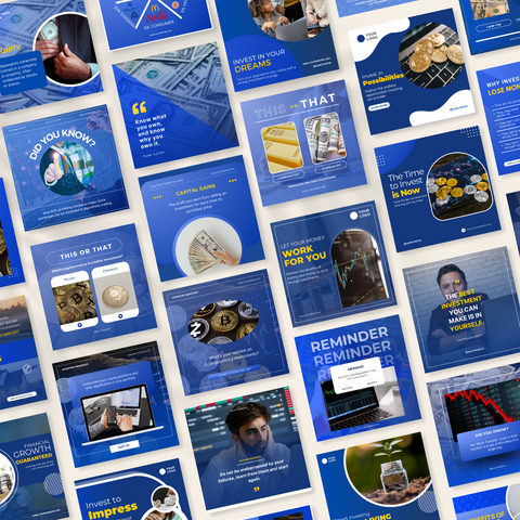 Unlock the ultimate arsenal of social media templates designed to skyrocket your financial influence online! 🚀 With 500 fully customizable Canva templates, we offer you the golden key to establish yourself as an investment guru on social media platforms. Share wisdom, ask questions, post reminders, and engage your audience while driving home the importance and value of smart investing. 🎨💡📈