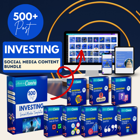 Unlock the ultimate arsenal of social media templates designed to skyrocket your financial influence online! 🚀 With 500 fully customizable Canva templates, we offer you the golden key to establish yourself as an investment guru on social media platforms. Share wisdom, ask questions, post reminders, and engage your audience while driving home the importance and value of smart investing. 🎨💡📈
