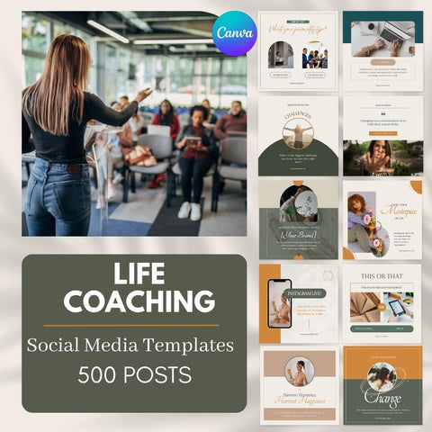 This inspiring bundle includes over 500 fully-editable templates designed to help you create impactful and engaging social media content for your life coaching business. Perfect for life coaches, mentors, personal development gurus, and anyone looking to inspire and guide their audience while saving time, effort, and money. 🌟⌛💰