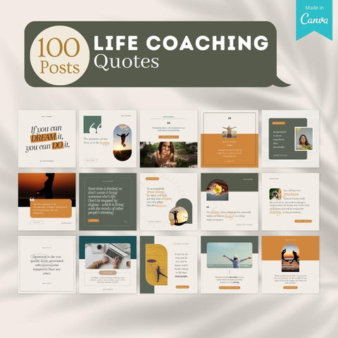 ✅️ 100 Life Coaching Quotes - Canva Editable Templates 💬