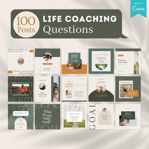✅️ 100 Life Coaching Questions - Canva Editable Templates ❓