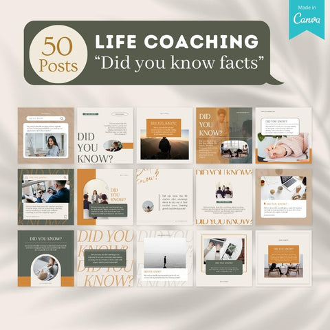 ✅️ 50 Life Coaches “Did You Know Facts” - Canva Editable Templates 📖