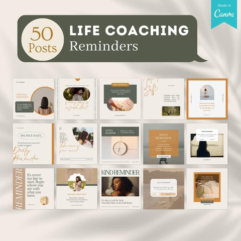 ✅️ 50 Life Coaches Reminders - Canva Editable Templates 🔔