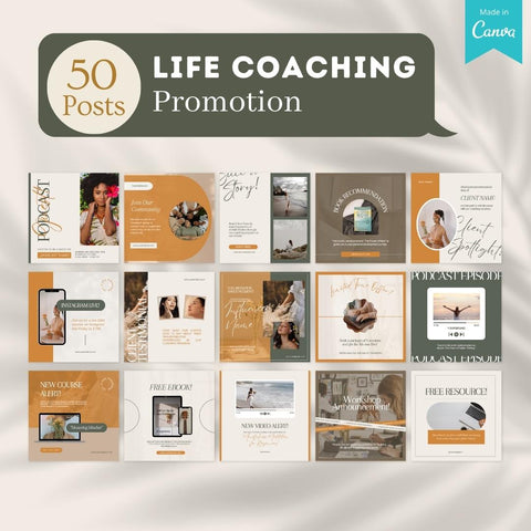 Promote your life coaching services with flair and professionalism. These 50 promotional post templates are crafted to spotlight your offerings, special sessions, workshops, and more. Fully customizable in Canva, they're your ticket to captivating visuals that convert followers into clients. 🌐📈
