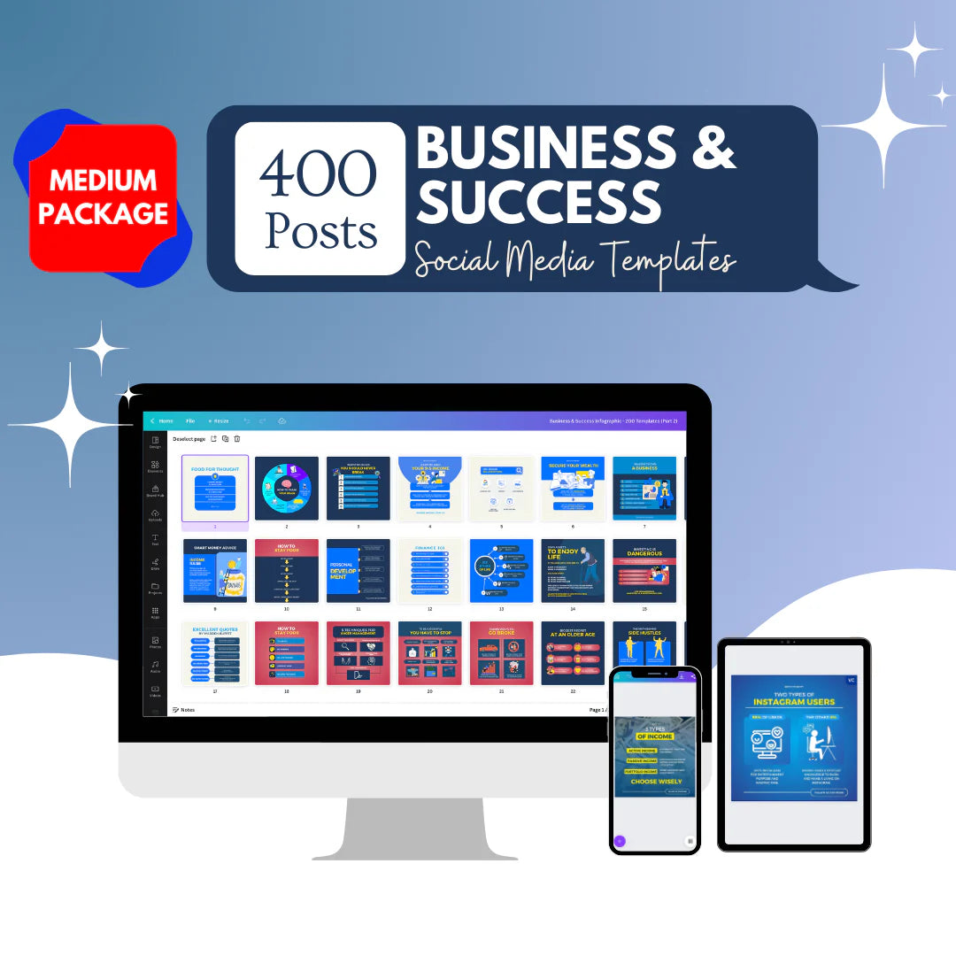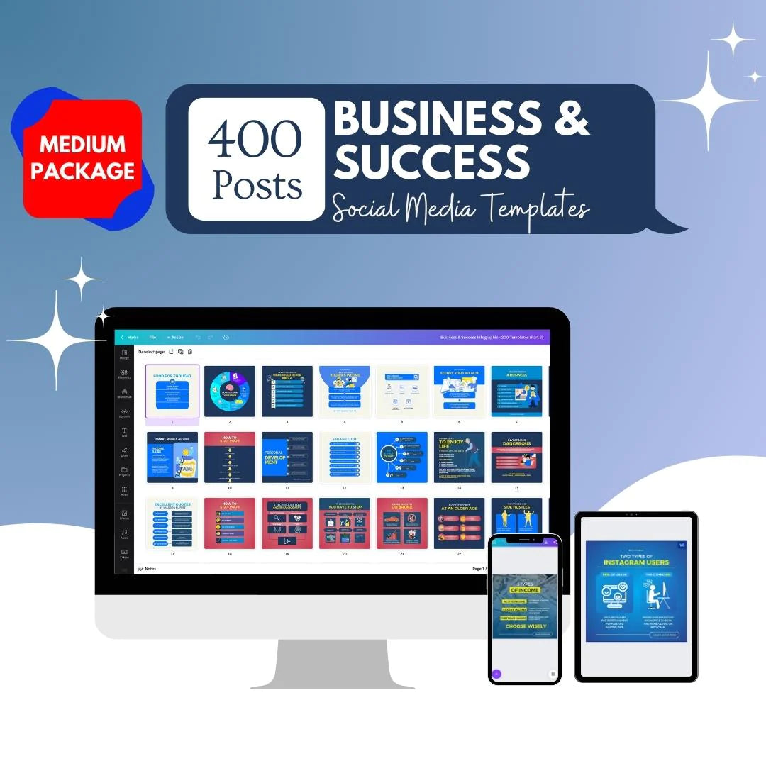 Our "Done-For-You" library brings you the Business Success Social Media Templates, offering 200, 400, or 1,000 fully customizable designs. This resource caters to entrepreneurs, business coaches, influencers, and success-driven individuals who aim to enrich their social media content.