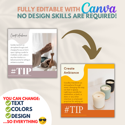 These templates offer a quick and easy solution for anyone looking to create professional-looking candle content, without the need for graphic design skills. 🚫🎨✏️