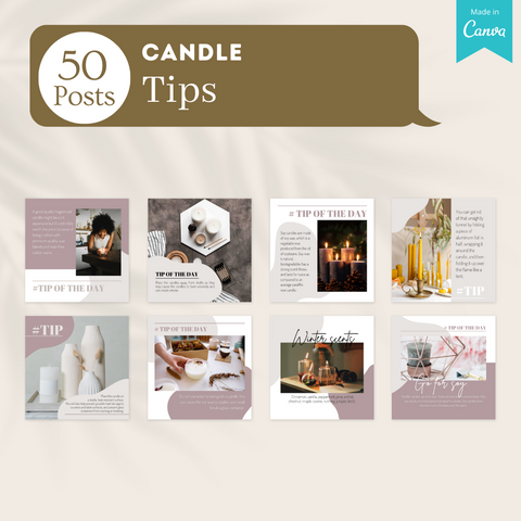 ✅ 50 Candle Tips Templates - Expert advice and helpful tips on various aspects of candle making, candle care, and enhancing the ambiance with candles. 💡📈🎯