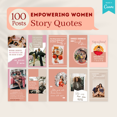 Discover over 600 fully-editable templates crafted to inspire and uplift women, designed to help you create captivating and engaging content on social media that effectively promotes your brand. Perfect for female entrepreneurs, mentors, or anyone looking to empower and inspire their female audience, our templates will save you time, money, and energy, providing everything needed to create eye-catching visuals within minutes. ⏳💻💸