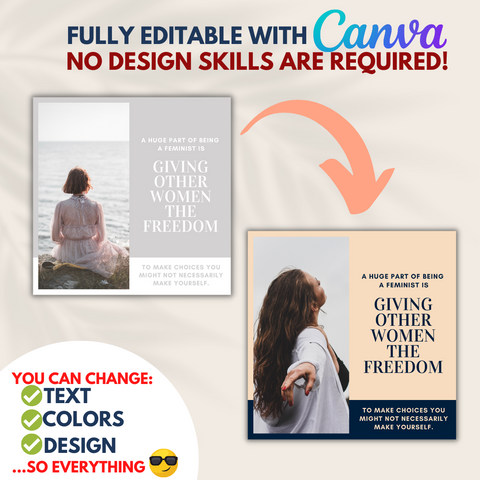 Discover over 600 fully-editable templates crafted to inspire and uplift women, designed to help you create captivating and engaging content on social media that effectively promotes your brand. Perfect for female entrepreneurs, mentors, or anyone looking to empower and inspire their female audience, our templates will save you time, money, and energy, providing everything needed to create eye-catching visuals within minutes. ⏳💻💸