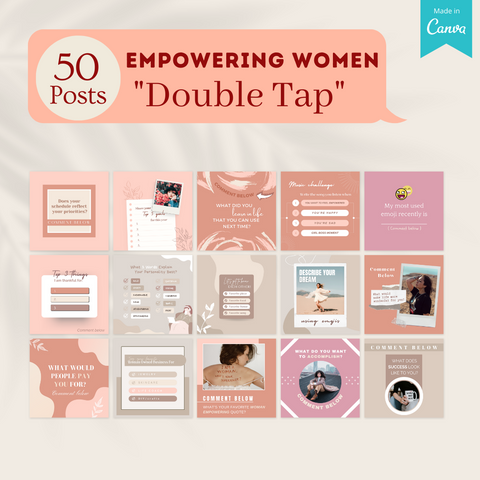 ✅50 Empowering Women "Double Tap" Posts - Editable in Canva for free (engaging prompts)