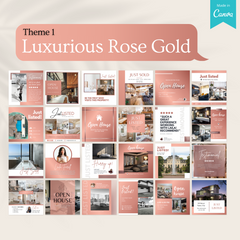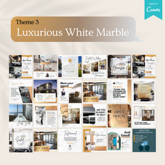 With these templates, you can consistently post on your page 📱 and engage your audience with captivating designs that celebrate the excitement and opulence of luxury real estate. Choose from four stunning themes: Black Marble + Gold, Gold + White, White Marble + Gold, and Rose Gold + White. 🎨🤩