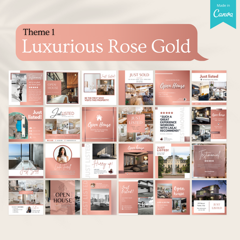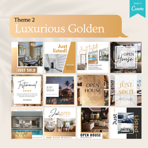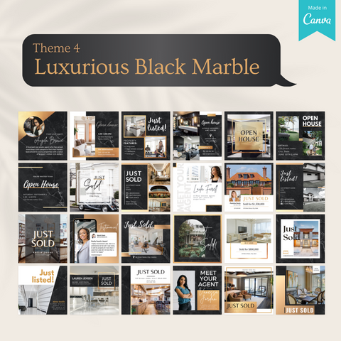 ✅ 100 Luxury Real Estate Templates (Just Listed, Just Sold, Testimonials, etc.) - Elegantly designed templates to showcase your latest luxury property listings, sales successes, and impressive client testimonials. Choose from four different themes to match your personal style and brand identity: