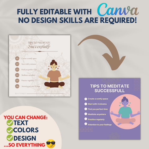 These templates are perfect for Meditation Instructors, Mindfulness Coaches, Yoga Teachers, Wellness Enthusiasts, and anyone passionate about sharing the benefits of meditation and inner peace. 🧘♀️🧘♂️🌸