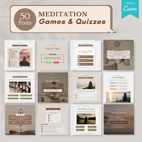 ✅ 50 Meditation Games & Quizzes Templates - Fun and interactive games and quizzes to engage your followers and promote a sense of community. 🎲🌟🎉