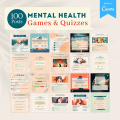 ✅ 100 Mental Health Games & Quizzes Templates - Entertaining and thought-provoking games and quizzes that encourage your followers to explore various aspects of mental health and well-being. 🎲🌟🎉
